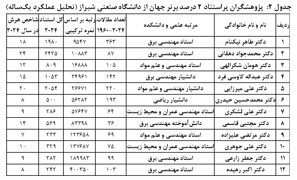 ۱۳ پژوهشگر دانشگاه صنعتی شیراز در شمار پژوهشگران پراستناد ۲% برتر جهان در سال ۲۰۲۵